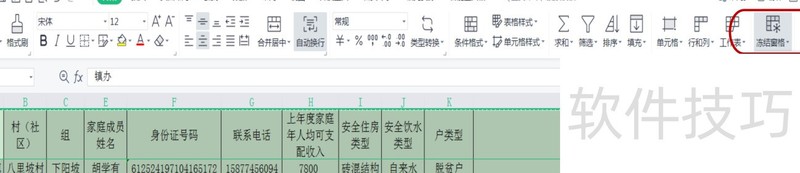 当工作表行列较多时,可使用冻结窗格功能,使指定的行或列在滚动或翻页时始终固定显示在页面顶部或左侧。