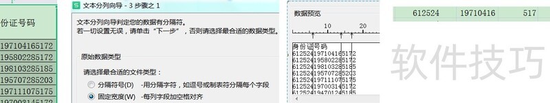 选中身份证列,点击数据菜单中的分列,选择固定宽度进行拆分。