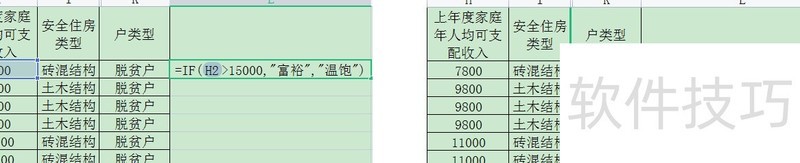 若H2单元格数值超过15000,则判定为富裕,否则为温饱状态。