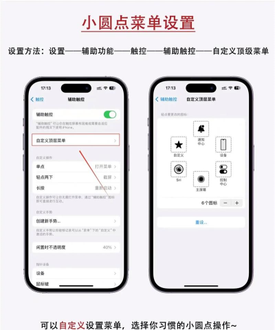 这个小圆点,官方名字叫“辅助触控”,它是一个虚拟的悬浮按钮,你可以把它放在屏幕任何位置,轻轻一点,就能弹出菜单,菜单里可以放很多快捷操作,比如打开控制中心,或者调出通知中心,甚至能自定义成你常用的功能,它主要为了方便单手操作,特别是屏幕很大的手机,手指够不到顶部时,用它就很方便。