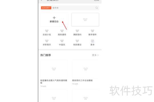 打开WPS,点击左上角,选择空白演示即可创建新幻灯片。