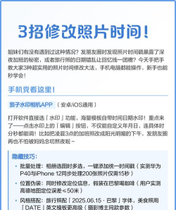 很多人拍照后,发现照片上没有时间,这让人有点头疼,其实,给照片加上时间,方法挺多的,而且操作也不难,今天,我就来和大家聊聊,照片怎么加时间,从手机设置到后期编辑,咱们一步步说清楚。