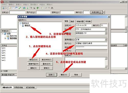 4、 按图示步骤创建站点。
