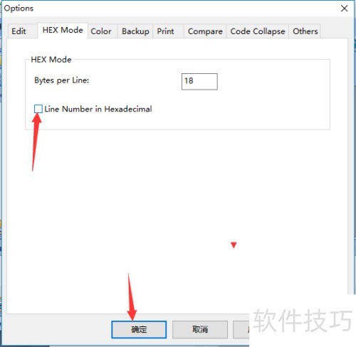 5、 取消勾选行号以十六进制显示后,点击确认按钮即可。
