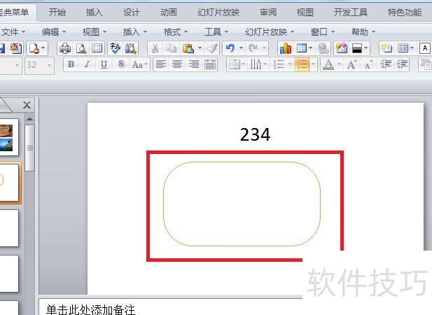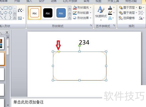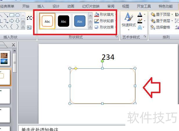 在幻灯片中插入圆角矩形并调整样式。