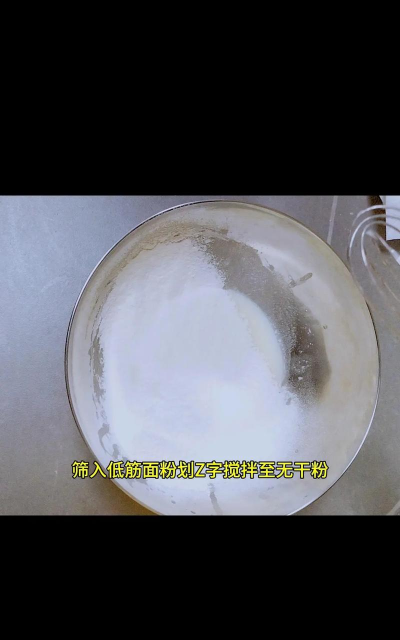 材料工具都齐了,现在进入核心步骤,要把蛋清和蛋黄分开,放在两个干净的盆里,记住,装蛋清的盆必须无水无油,否则很难打发,然后,在蛋黄里加入糖和油,搅拌均匀,再倒入牛奶,接着筛入面粉,轻轻搅拌成蛋黄糊,接下来是打发蛋清,分三次加糖,打到提起打蛋器,出现小尖角为止,把蛋白霜分三次,拌入蛋黄糊里,要像炒菜一样翻拌,不能画圈搅拌,否则会消泡。