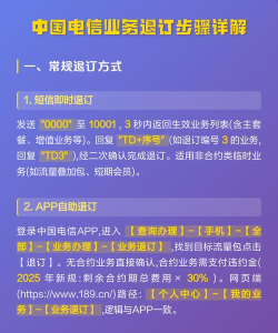 现在退订业务,最方便的就是线上操作了,首选当然是电信的官方渠道,比如“中国电信”APP,或者“电信营业厅”微信小程序,登录你的账号后,找到对应的业务管理页面,通常会有“退订”或“取消”的按钮,按照提示操作就行,不过,有些复杂的业务,比如融合套餐,可能无法直接在线退订,这时候,你可以试试在线客服,在APP里找到人工客服入口,直接说明你要退订的业务,客服会引导你完成后续步骤,线上操作的好处是,不用跑营业厅,节省时间。