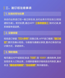 业务成功退订后,别以为就万事大吉了,有几件事还得留意一下,关注费用结算,退订可能不是即时生效的,比如,套餐通常是次月失效,那么这个月的费用怎么算,要问明白,检查是否有押金或设备要还,比如宽带的光猫、机顶盒,如果是从电信租的,退订时需要归还,否则会扣钱,记得确认退订状态,过一两天,再登录APP或者打客服电话10000号,确认业务确实已经取消,没有产生新的费用,这样才算真正完成。