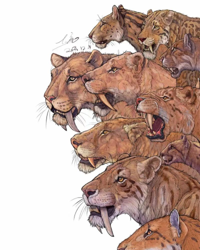 画剑齿虎,重在抓住体态与长牙,多观察参考图,练习几次,你就能画出威风凛凛的史前猛兽了。
