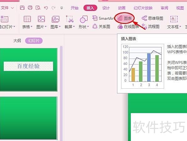 在电脑WPS中打开PPT,点击插入选项卡中的图表功能即可。