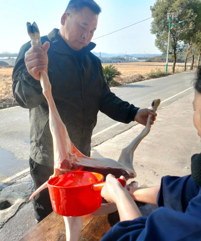 放血是第一步,也是关键一步,可以让羊快速失去意识,减少痛苦,通常,我们会用绳子绑住羊的后腿,然后把它倒挂起来,接着,找准羊脖子上的动脉,用刀快速割开,这时,血会喷涌而出,要用盆接好,放血一定要彻底,这样羊肉颜色才好,也不会有腥味。