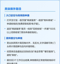 总的来说,开通花呗收款,步骤很清晰,先认证商家,再找到入口,最后同意开通,整个过程,几分钟就能完成,开通之后,收款就方便多了,能吸引更多顾客,当然,别忘了关注费率,合理规划成本。