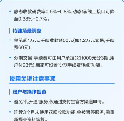 开通后,顾客付款时,就能选择花呗了,不过,你要注意,每笔交易,支付宝会收取,一定比例的服务费,这个费率,通常是0.8%,具体以页面显示为准,另外,新开通的账户,可能会有额度限制,用一段时间后,额度会提升。