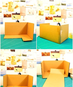现在,开始动手吧,根据你的设计,裁剪硬纸板,做成隔板,然后,用胶水仔细粘贴,固定好位置,记得要等胶水干透,这样才牢固,用包装纸,装饰整个盒子,让它变漂亮。