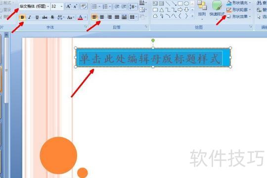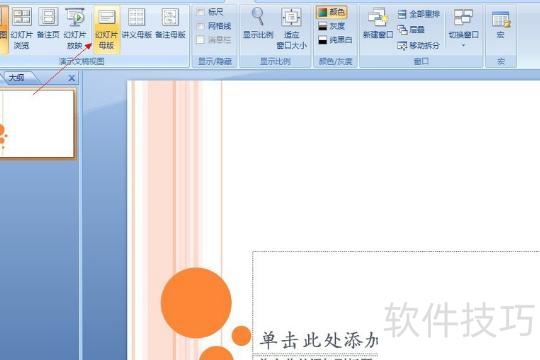 4、选择顶部菜单中的视图→幻灯片母版,进入母版编辑模式,修改字体样式,所示。