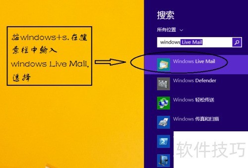 1、 进入电脑系统后,按下Windows键加S键,在搜索框中输入Windows Live Mail,找到后点击打开该软件即可。