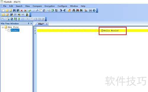 3、 在新建的空白文档里输入一行文字,例如Hello World!。