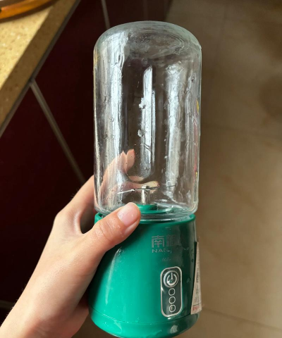 再看主体组装榨汁机的核心,就是主机和搅拌杯,先把主机放在平稳的地方,接着,拿起透明的搅拌杯,对准主机上的卡槽,轻轻旋转一下,听到“咔哒”一声,就说明卡紧了,这一步要温柔点,别用蛮力,不然容易损坏卡扣。