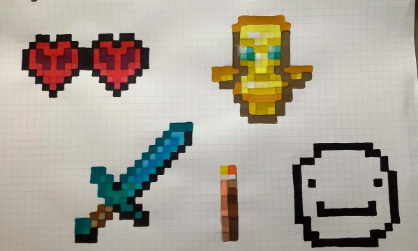 游戏里的角色和生物,造型都很简单,比如史蒂夫,就是一个方块人,画他的时候,头是方块,身体是方块,四肢也是细长的方块,画苦力怕,就画一个绿色的,高高的方块身体,加上一张简单的脸,不用画得太复杂,越简单,越像。
