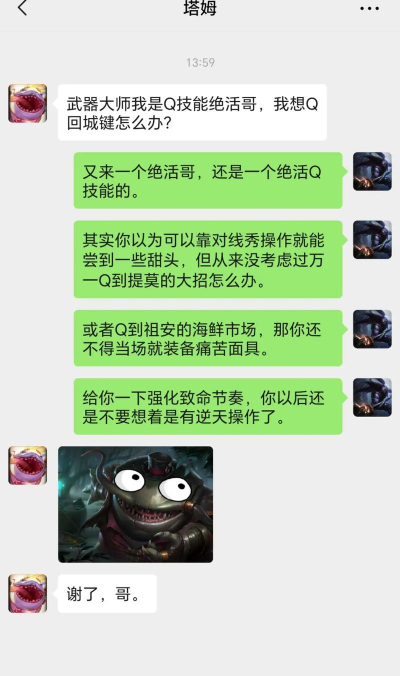 所以,对线塔姆,第一点,就是保持距离,他的Q技能,虽然烦人,但射程有限,我们尽量,站在安全距离,补刀和消耗,不要给他,轻易Q到的机会,如果他走上来,想用Q消耗,我们就后撤,或者用技能反打。