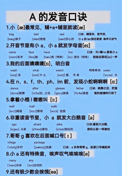 a的读法,需要结合单词,记住要点,避开误区,然后,坚持练习,就能掌握。