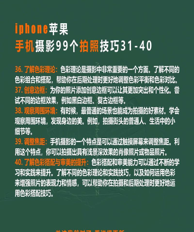 用好苹果手机拍照,关键是多练习,多尝试,记住这些技巧,从光线构图开始,慢慢找到感觉,你会发现,随手一拍,都是好看的照片。