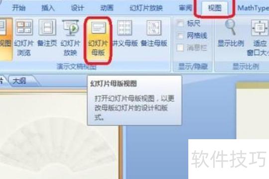 点击视图菜单,选择幻灯片母版,此步骤至关重要。