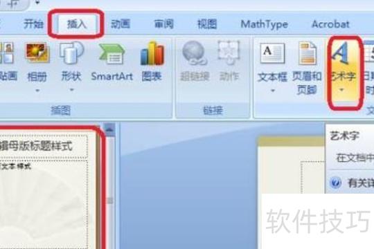 点击插入选项卡,选择艺术字功能。