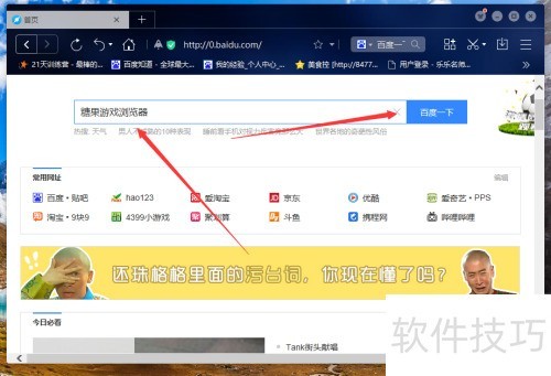 2、 在搜索框中键入糖果游戏浏览器,随后点击网络一下进行查询,操作步骤所示。