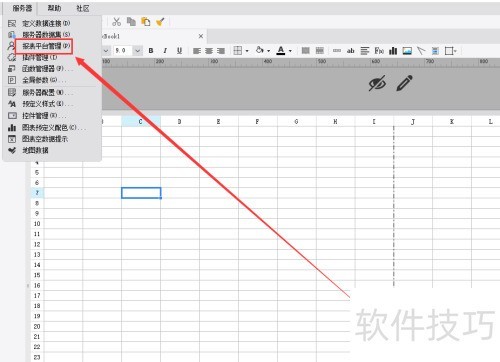 1、 启动FineReport设计器,进入服务器菜单,开启报表平台管理功能。