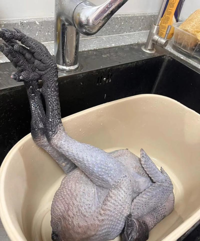是清洗和分割,把处理好的乌鸡,放在水龙头下,里里外外冲洗几遍,直到水变清为止,然后,你可以根据需求,把鸡剁成块,或者整只留着炖汤。