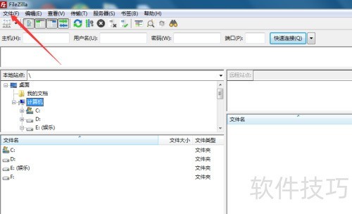 1、 启动Filezilla程序,操作见图示。