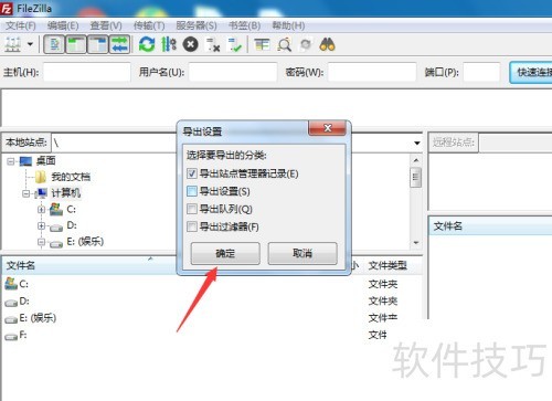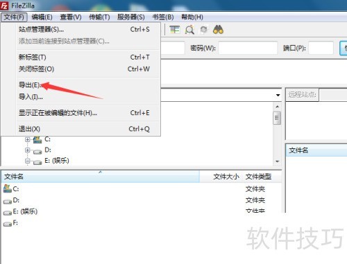 导出FileZilla站点:打开站点管理器,选择导出选项。