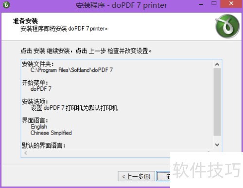 1、 安装DOPDF软件时,我通常采用默认设置,一路点击下一步即可。需注意的是,若电脑连接有实体打印机,建议不要将DOPDF设为默认打印机,以免影响正常打印。