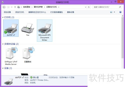3、 检查是否安装成功,可查看打印机和传真中是否存在名为DOPDF的虚拟打印机。