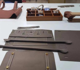 鞍架定型后,就要裁剪坐垫和护腿片了,这部分直接接触人和马,所以皮革要选柔软一些的,用纸板先画出样板,反复修改直到合身,再拓到皮革上裁剪,裁剪好的皮片,边缘要打磨光滑,然后打孔,用结实的蜡线一针一针缝起来,缝合是最费时的,但一定要缝得紧密牢固。