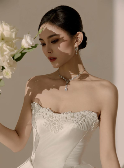 然后是色调与光影,婚纱照的氛围,很大程度靠色调,如果原片偏暗,可以先提亮整体,再单独调整高光和阴影,让画面有层次,肤色要红润健康,别调得惨白,背景的颜色,也可以适当统一,让画面更和谐。