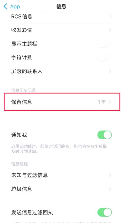如果想清空,所有对话记录,可以试试这招,进入设置选项,找到信息一栏,往下滑动屏幕,看到保留信息,点进去修改,把时间改成,三十天或一年,系统会问你是否,删除旧信息,确认就行了,这样操作后,超过时间的,就自动清除了。