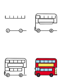 你可以先画一个长方形,作为巴士的车身,然后在长方形下面,画两个小圆圈,当作车轮,这样,巴士的大致样子就出来了,是不是很简单呢。