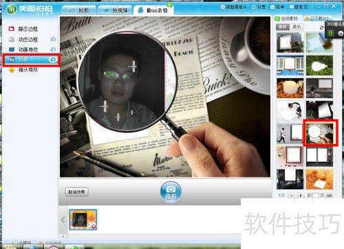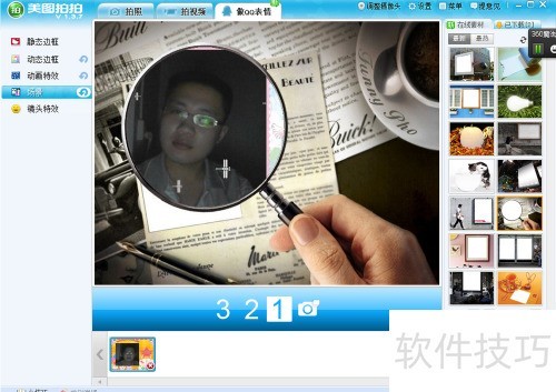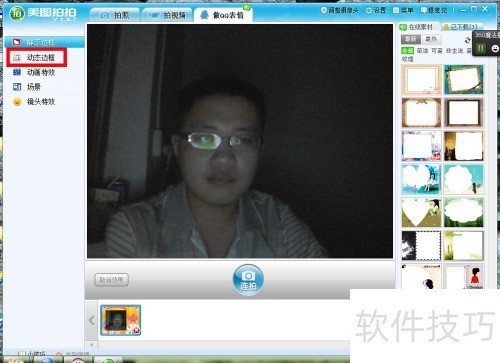 3、 摄像头即将开启,左侧可选边框样式,此处选用动态边框效果。