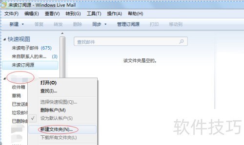 1、 启动Windows Live Mail后,点击用户名,选择新建文件夹,创建一个新文件夹,以便后续将需要整理的文件存入其中,操作简便,轻松完成归类准备。