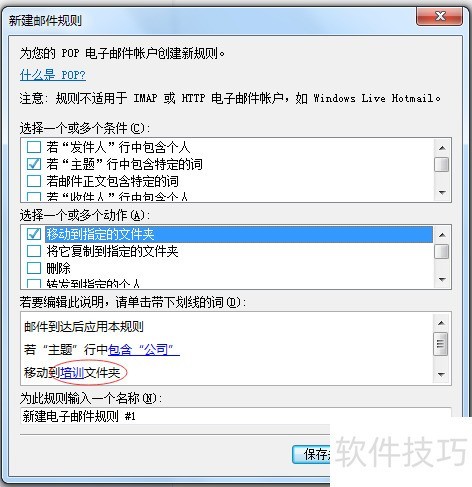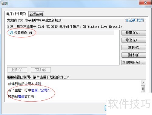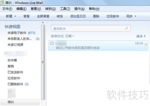 11、 所示,当收到邮件主题包含公司的消息时,Windows Live Mail会自动将其移至培训文件夹,实现智能分类,有效提升邮件管理效率,使用起来十分便捷。