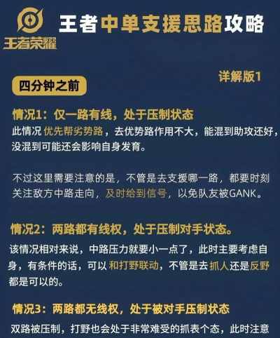 中单不能只待在线上了,要学会游走,清完一波兵线后,就可以看看边路,如果队友打起来了,要赶紧过去帮忙,支援成功的话,能帮队友建立优势,甚至拿下人头,但游走前,要确保自己兵线处理好,不然会亏很多经验。