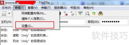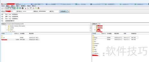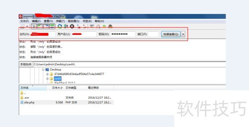 1、 安装并启动FileZilla,输入服务器地址、用户名及密码,即可建立连接。