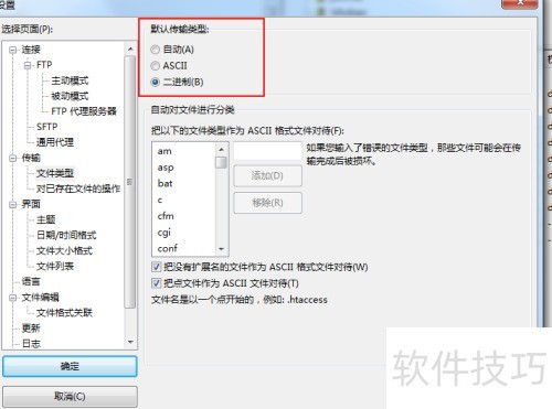 FTP传输文件时通常自动选择类型,但有时需手动设置为二进制模式以确保正确传输。