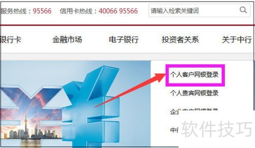 2、 登录中国银行网站,点击右侧个人网银登录按钮。