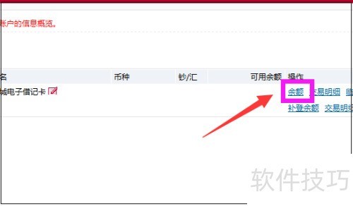 6、 登录银行账户 overview 页面,点选银行卡后方的余额选项。