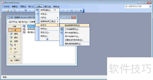 9、 通过工具-安全-撤消数据库密码选项,即可解除数据库密码。