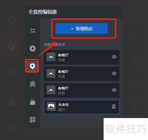 2、 打开全景图编辑器,点击新增热点按钮。
