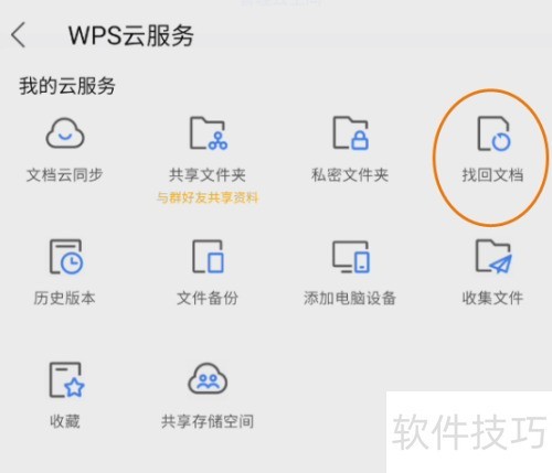 打开WPSOffice,选择WPS云服务,点击进入,再点击找回文档即可。
